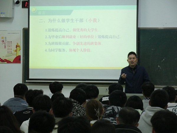 戴建从“为什么要担任学生干部”、“学生干部有哪些职责”、“如何开展学生工作”等方面为大一新班干做了详细的介绍。书记认为,班干部要具备优良的政治思想素质、良好的道德品格修养和终生学习的科学理念,才能带领班级同学不断向前。并结合自身经历,与同学们分享了作为班干部管理班级的一些小妙招,勉励新生班长、团支书不断提升个人素养,练就过硬本领,提高服务能力,肩负起新时代的职责和使命。