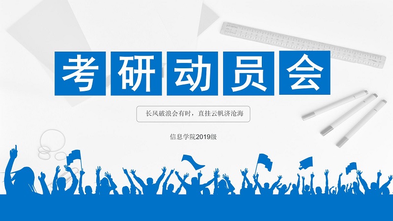 为提高学生的考研热情,明确考研目标,树立考研信心,掌握学习方法,信息学院于5月10日晚上7点在线举办考研动员大会。此次动员会邀请了5名考取南京航空航天大学、南京理工大学、南京邮电大学等高校研究生的学生代表介绍考研经验。学院党委副书记戴建及全体辅导员出席会议,2019级有考研意向的200余名同学参会,会议由辅导员陈华蓉主持。