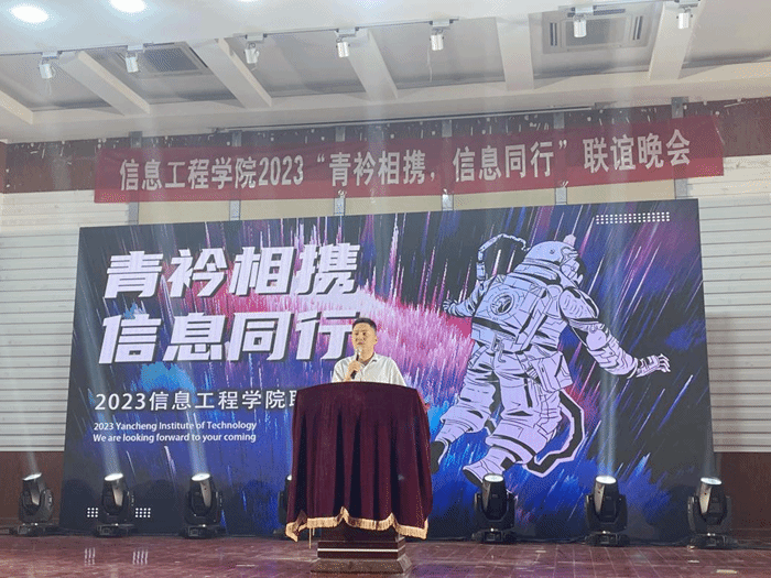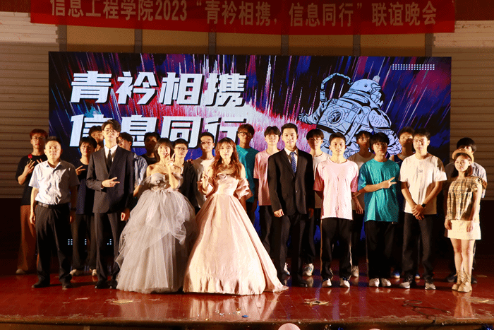 为丰富文化活动,展示大学生风采,凝聚奋进力量,携手同行,6月9日晚,信息学院在北校区五四报告厅举办“青衿相携,信息同行”联谊晚会。信息学院党委副书记戴建、学工办和分团委负责人、辅导员老师及2022级学生近400人参加活动。