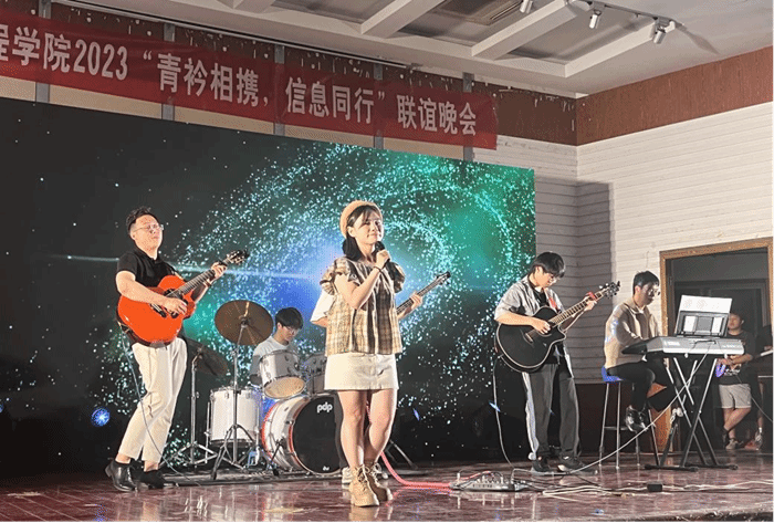 22级全体团支书表演的舞台剧《觉醒年代》将历史向前推进一百年,他们用心呼喊,喊醒这沉睡的地,要喊亮这漆黑的天,要唤起四万万同胞站起来,他们用舞台张力告诉新时代的中国青年“以青春之我,创建青春之家庭,青春之国家,青春之民族”;22级辅导员田雪俐、纪锦霖老师组建的“小青蛙乐队”带来歌曲《光年之外》《爱的魔法》,希望同学们开拓思维、珍惜时光、收获幸福;节目最后,22级全体班长带来舞蹈《欢天喜地闹盛夏》将晚会气氛烘托至最高点。