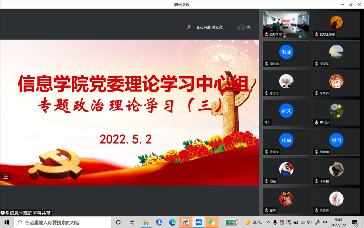 学院教科研办主任王媛媛围绕疫情防控形势下学生教学管理作题为“深入贯彻落实习近平法治思想,促进大学生全面发展”的重点发言。网络工程系主任黄曙荣以“大学生铸牢中华民族共同体意识的实现路径”为主题作学习交流。