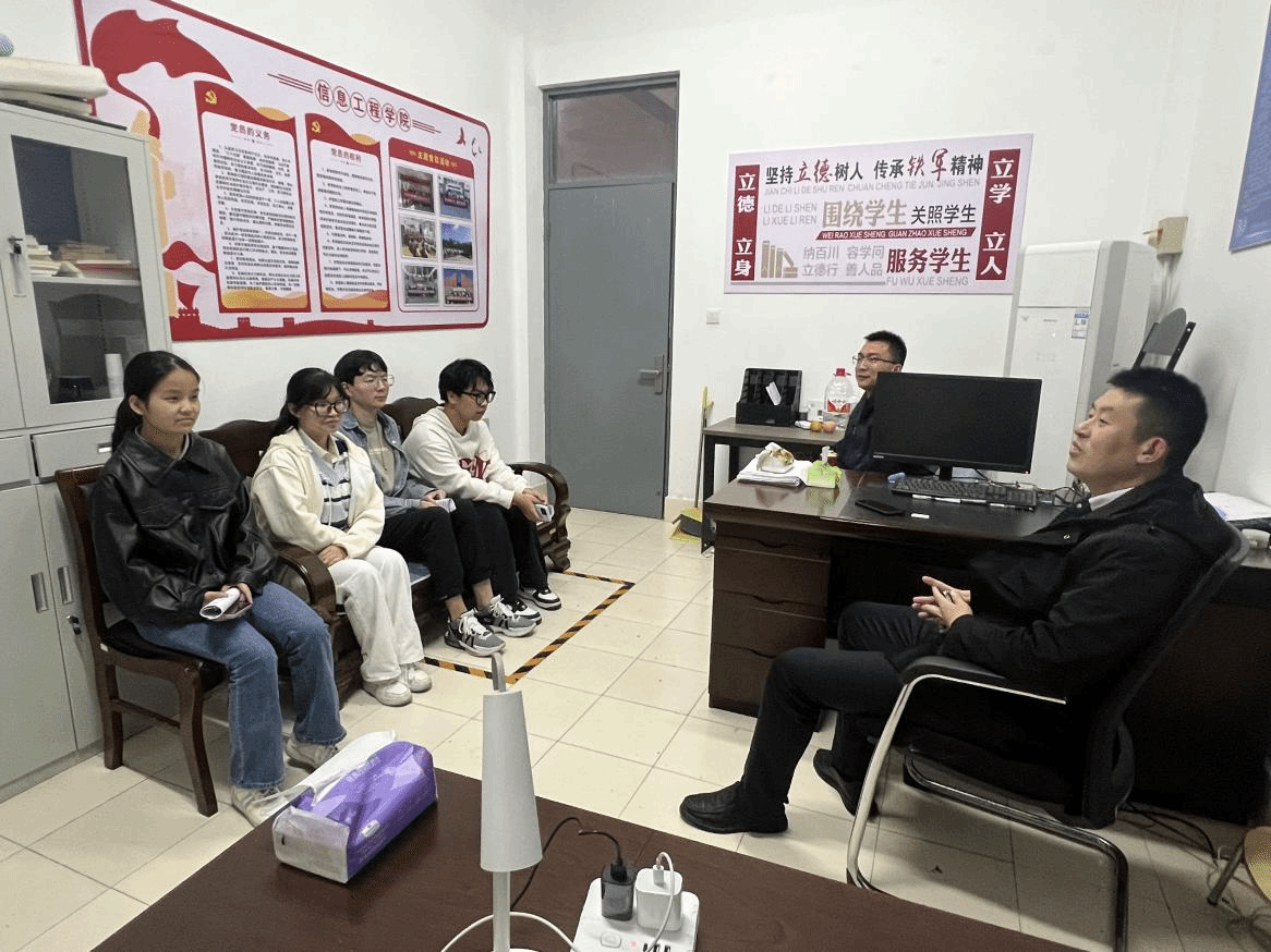 会后,为进一步推动“一站式”学生社区高质量建设,加强学生宿舍管理,学生工作办公室主任席东风、学院驻“一站式”学生社区辅导员董金成和学生代表在学院“一站式”学生社区办公室就近期开展的社区寝室文化活动和学生党员宿舍挂牌活动进行了交流。与会老师和学生代表就宿舍的安全、卫生、晚归以及文化建设等问题展开了深入探讨与交流。