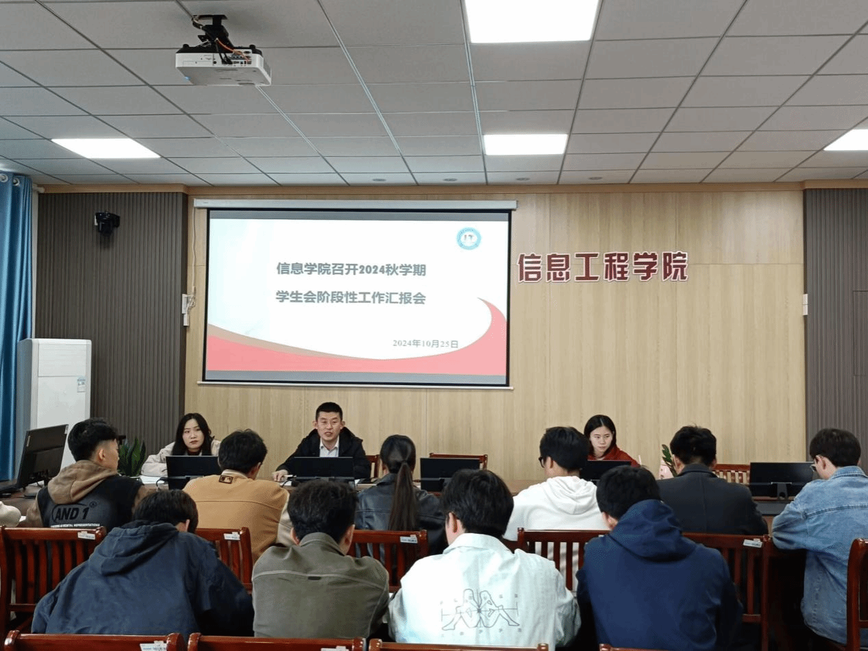 10月25日下午,信息工程学院在希望大道校区怀德楼B410会议室召开2024年秋学期学生会阶段性工作汇报会。学生工作办公室主任席东风,辅导员田雪俐、赵艳及学生会主席团成员、各部门部长参加本次会议。会议旨在总结前一阶段学生会工作的成果与经验,分析存在的问题与不足,制定下一阶段的工作计划,逐步提升工作的计划性、科学性和实效性。