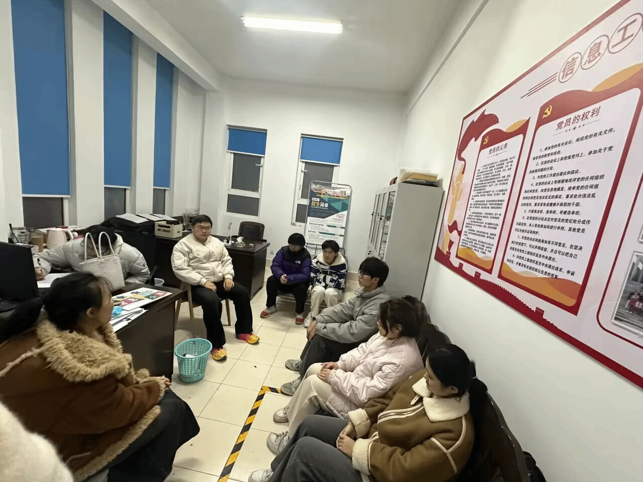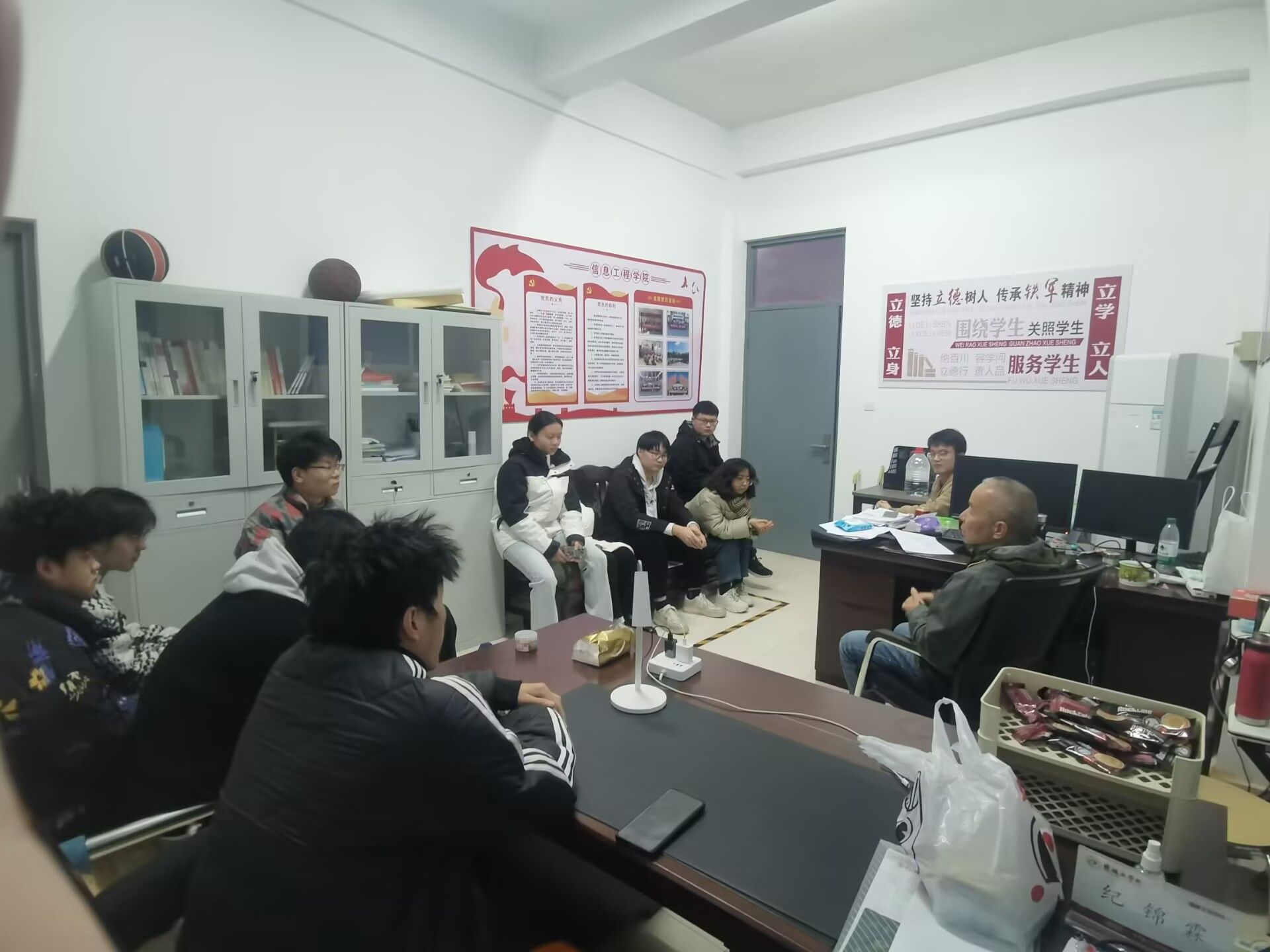 为落实立德树人根本任务,促进学院优良学风建设,进一步加强辅导员对班级的管理,强化师生间学习情况的交流,11月21日,信息学院专兼职辅导员深入一站式学生社区,开展学风建设主题系列座谈会。