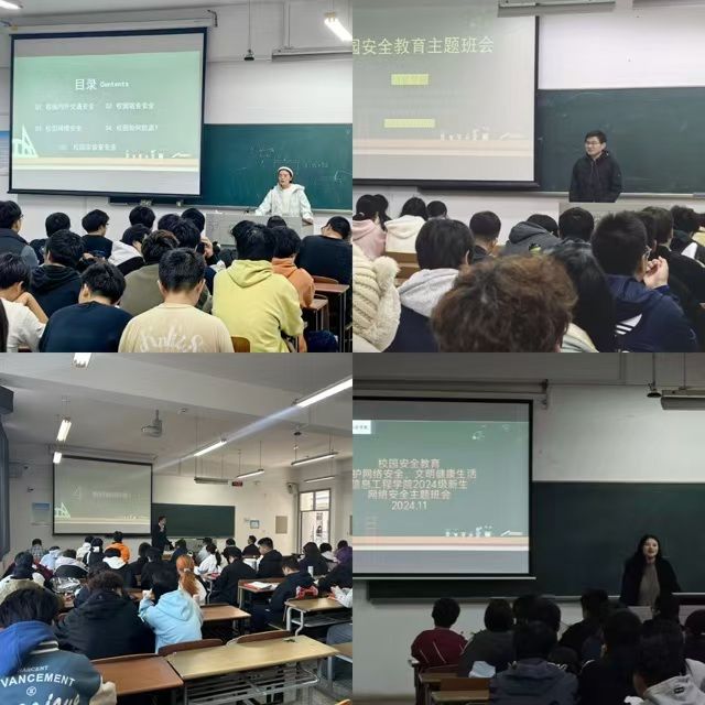 为了切实增强新生对校园安全问题的认识与防范意识,11月6日至13日,信息学院在希望大道校区博学楼教室召开新生校园安全教育主题班会。新生辅导员孙曌、孔维宾、田明、陈朝峰、孙绮晨分别主持各班级班会,520多名新生参加。