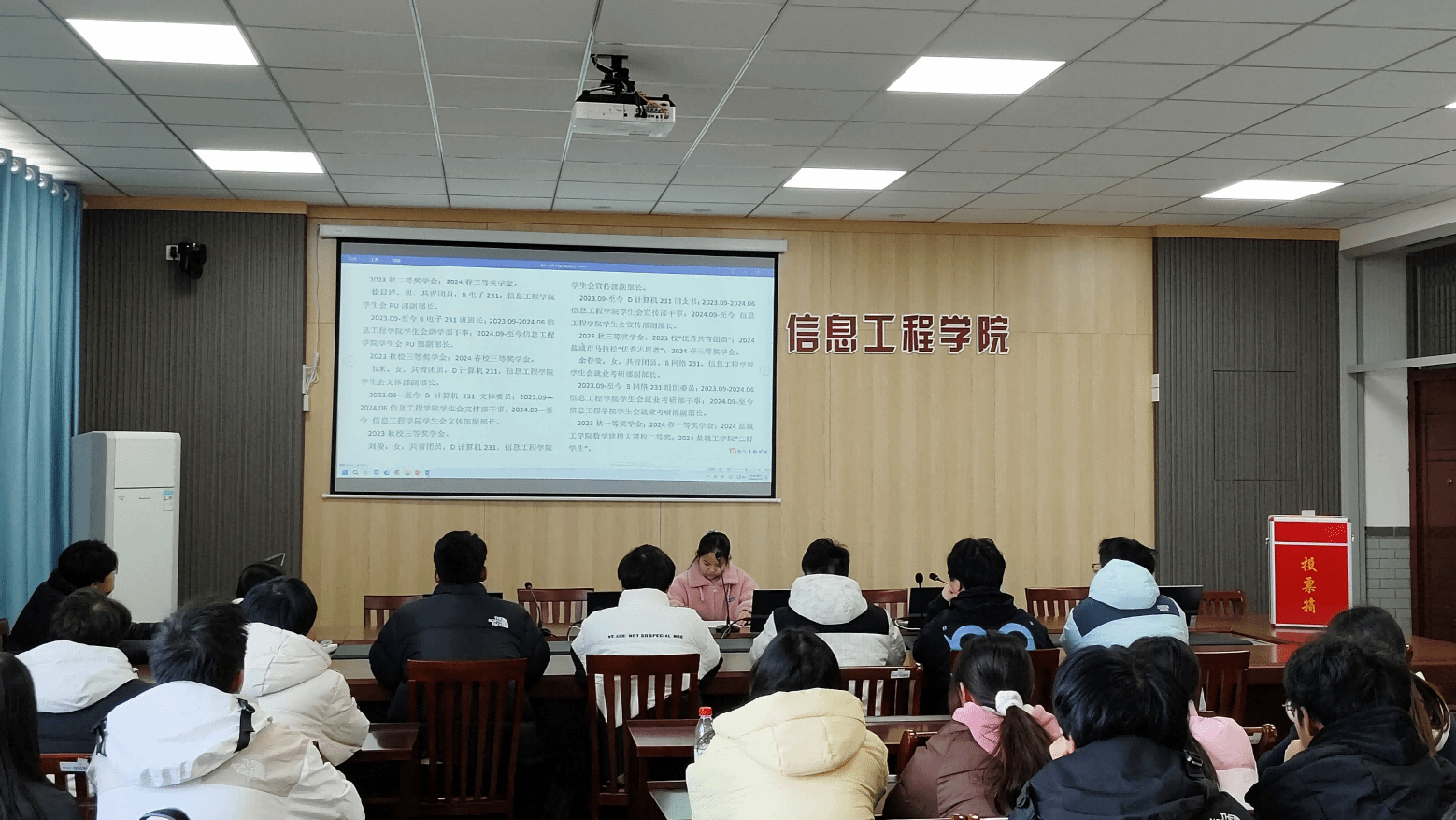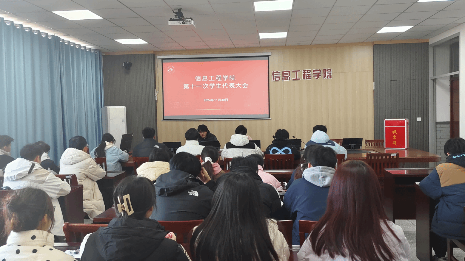 2024年11月30日下午,信息学院第十一届学生代表大会在怀德楼B410召开。会议由学院团委副书记纪锦霖主持,学院学生会主席团、部长团及大一至大四学生代表共40余人参加。