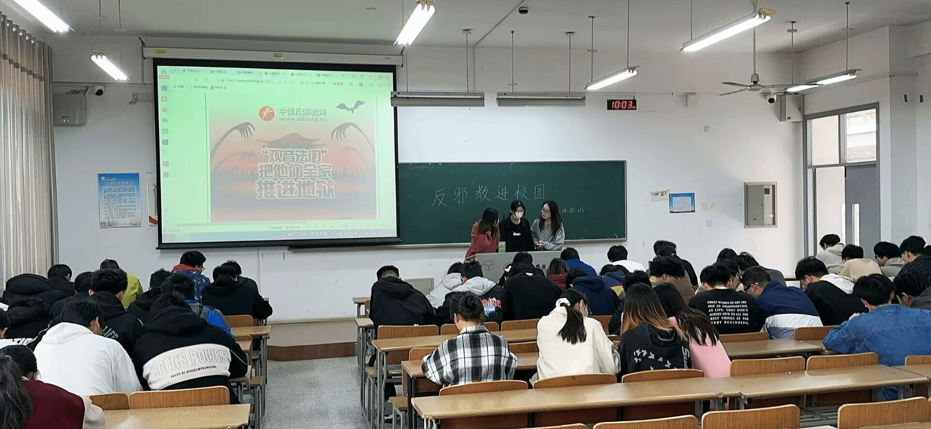 4月12、13日,开展“反邪教警示教育进校园”活动,通过校内媒体、宣传栏、展板、集中政治理论学习等形式,引导师生关注“中国反邪教”微信公众号,积极开展线上线下警示教育,提高师生防范邪教的意识和能力。