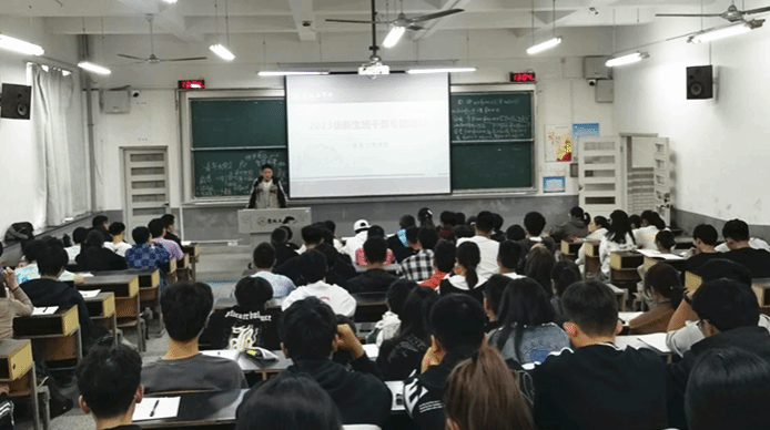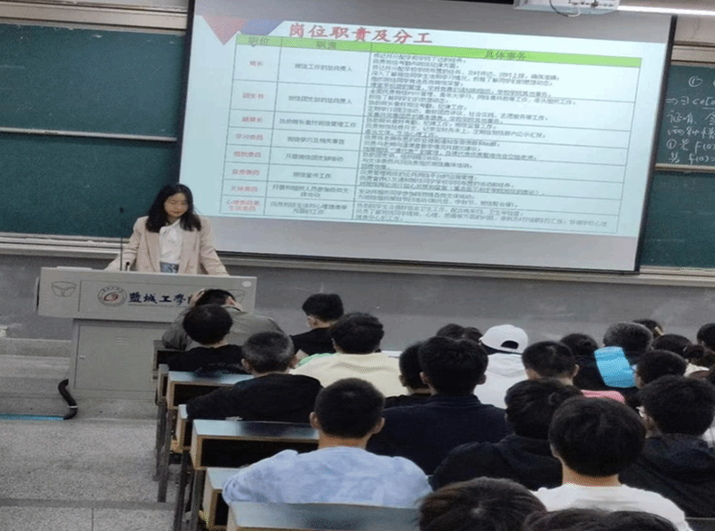 辅导员老师介绍学生班干部角色定位、岗位职责、工作分工等方面内容,对近期同学们的宿舍学习和生活情况进行了回顾,对如何开展班级工作提出了具体要求。