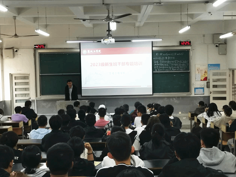 10月16日下午,信息学院在建军东路校区体知楼101教室举办2023级学生班干部专题培训,辅导员老师席东风、赵艳作专题交流,2023级127名学生班干部参加活动。
