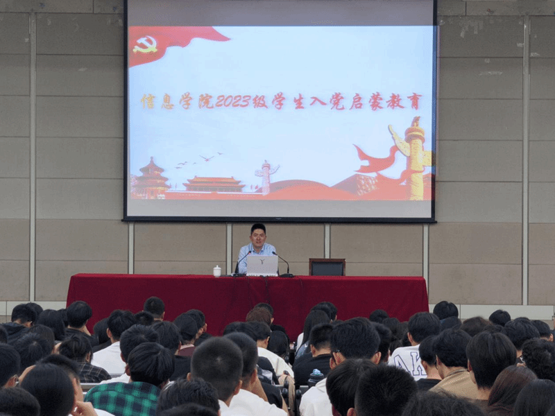 10月11日至12日,信息学院在建军东路校区化工楼报告厅、知行楼教室开展2023级学生“大学第一课”系列教育,邀请校党委保卫部部长张晓东作安全教育,学院党委副书记戴建作入党启蒙教育,学院专业系主任孔维宾、沈兆军、黄曙荣、宋法根作专业认知教育,2023级学生500多人参加活动。