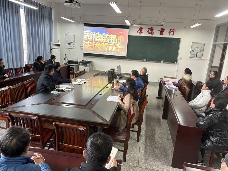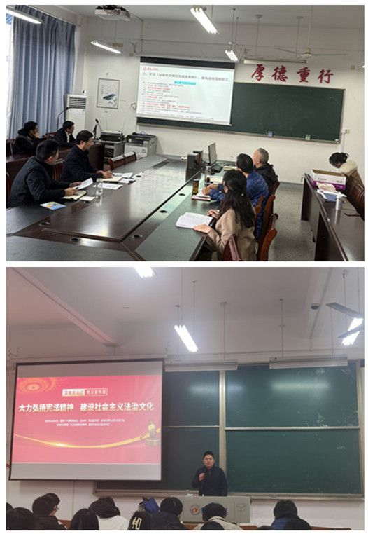 开展宪法主题班会,辅导员老师介绍坚持全面依法治国重要意义、《中华人民共和国宪法》主要内容、大学生遵守宪法和法律相关注意事项等内容,并要求同学们增强法治意识,做到学法懂法用法。