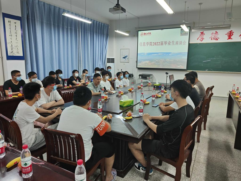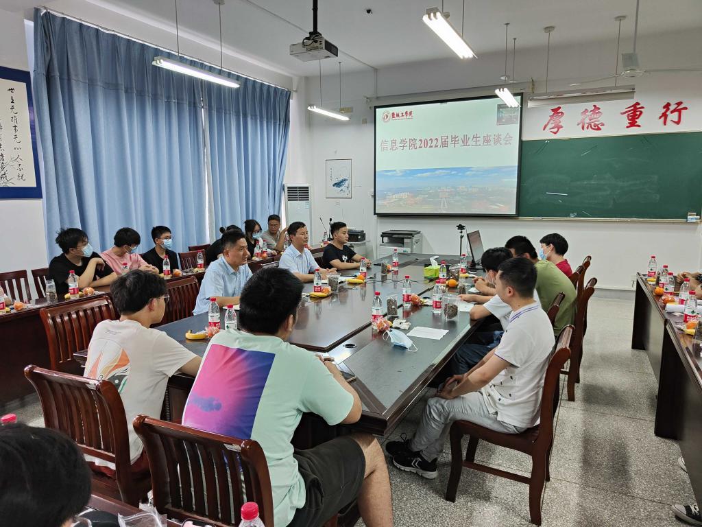 6月10日下午,信息学院在怀德楼B410会议室召开2022届毕业生座谈会,40多名毕业生参加座谈,300多名同学线上参加活动,信息学院党委书记王爱军、学工办负责人、毕业班辅导员出席活动。活动由信息学院党委副书记戴建主持。